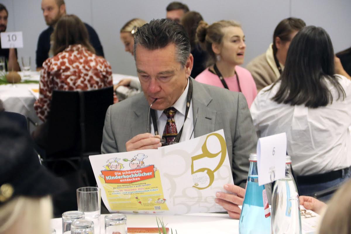 GAD-Präsident Friedhelm Josephs freute sich bei seiner Begrüßung die internationale und kulturelle Bedeutung dieser Veranstaltung zu unterstreichen und begrüßte besonders Herrn Takeshi Ito, den Generalkonsul Japans in Frankfurt, und Paul Kelly, den CEO des Dorling Kindersley Verlags, der weltweit zu den führenden Häusern für illustrierte Sachbücher zählt. In seiner Rede ging er auch auf die Veränderungen ein, wie KI auch den Kochbuchmarkt in Zukunft stark beeinflussen wird. Mit diesem Thema wird sich auch die GAD in den kommenden Jahren intensiv befassen – denn, so Josephs weiter, „unsere Aufgabe ist es, Qualität zu fördern, Transparenz zu bewahren und den Schutz geistiger Leistung zu sichern“. Er schloss mit dem Ausblick: „Wenn ich auf die Geschichte dieses Wettbewerbs zurückblicke, sehe ich nicht nur Listen von Preisträgern. Ich sehe ein kulturelles Netzwerk, das sich über Generationen erstreckt – Autorinnen und Autoren, Verlage, Journalistinnen, Köchinnen, Wissenschaftler, Menschen mit Leidenschaft und Neugier. Sie alle tragen dazu bei, dass das kulinarische Wissen, die Geschichten, die Erfahrungen unserer Zeit nicht verloren gehen. In gewisser Weise schaffen wir hier jedes Jahr ein Stück „Gastronomisches Gedächtnis“ – eine Sammlung von Ideen, Einsichten und Inspirationen, die weit über den Tellerrand hinausreicht.