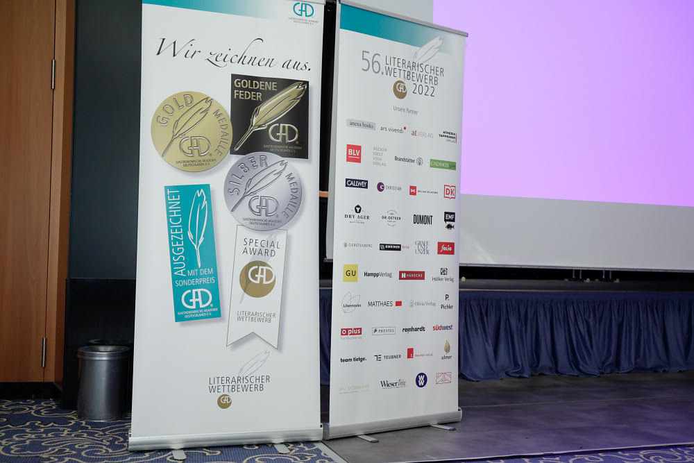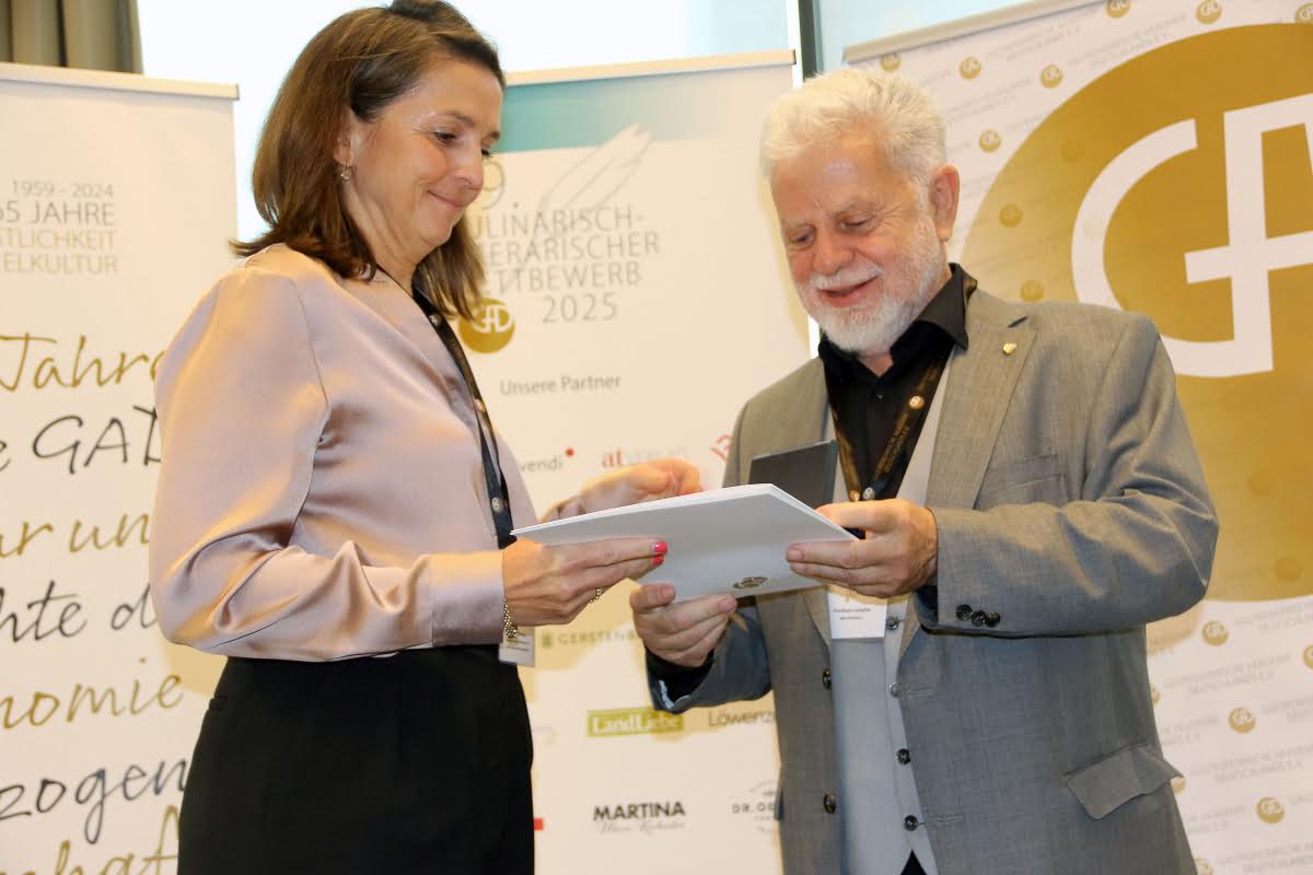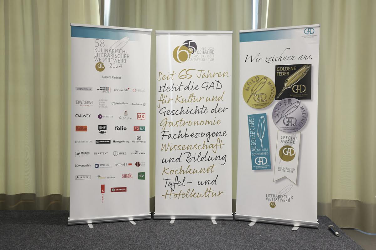 66 Jahre GAD und 59 kulinarisch-literarische Wettbewerbe – eine stolze Bilanz – und eine echte Erfolgsgeschichte. Seit 1960, so Hans G. Platz (gf. GAD-Vorstand), bei seiner Anmoderation, sei die GAD stolz darauf, „Genussbücher“ auszuzeichnen, die zeigen, dass Kulinarik weit mehr ist als das Kochen selbst. Sie sind Ausdruck von Bildung, Kultur, Handwerk und Lebensfreude. In diesem Jahr haben wieder 31 europäische Verlage und Verlagsgruppen insgesamt 97 "Genussbücher" in den Wettbewerb eingebracht. Bücher, die sich den Themen Essen, Trinken, Genießen und Tafelkultur widmen. Die GAD ist dankbar, dass der Wettbewerb über so viele Jahrzehnte hinweg, durch die Verlage und deren Autoren hohe Anerkennung und Wertschätzung erfährt. Ein wesentlicher Teil dieses Erfolgs liegt in der Expertise der rund 60-köpfigen Jury und der bewährten Bewertungs-Benchmark, die für jedes Buch mindestens fünf Bewertungen vorsieht. Diese Kombination, so Platz, hebt den GAD-Wettbewerb signifikant von anderen Anbietern ab.