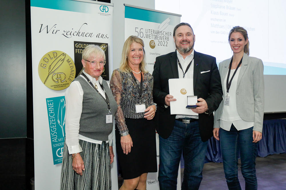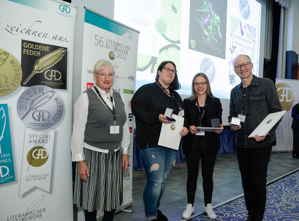 Die GAD-Jury vergab in diesem Jahr während der Preisverleihung im MELIÁ Hotel - Frankfurt-City insgesamt 12 Goldmedaillen für die besten Bücher in den jeweiligen Kategorien, darunter auch neu das Thema „Kochen und Ernährung für Kinder“, sowie 54 Silbermedaillen für besonders empfehlenswerte Bücher, darüber hinaus vergab die Jury einen Sonderpreis und einen Special Award. Dieser ging an den Trauner Verlag, Linz, für seine Verdienste um die gastgewerbliche Ausbildung in Deutschland. Durch die Bereitstellung hochwertiger Bildungsmedien leistet der Verlag seit vielen Jahren einen wertvollen Beitrag zur Förderung der beruflichen Qualifikation und des Wissens in der Branche. Besonders eindrucksvoll dokumentiert dies die zehnbändige Fach- und Lehrbuchreihe für Ausbildungsberufe in Gastronomie, Hotellerie und Küche, die von der Jury der Gastronomischen Akademie Deutschlands als wegweisend in didaktischer wie fachlicher Hinsicht gewürdigt wird.