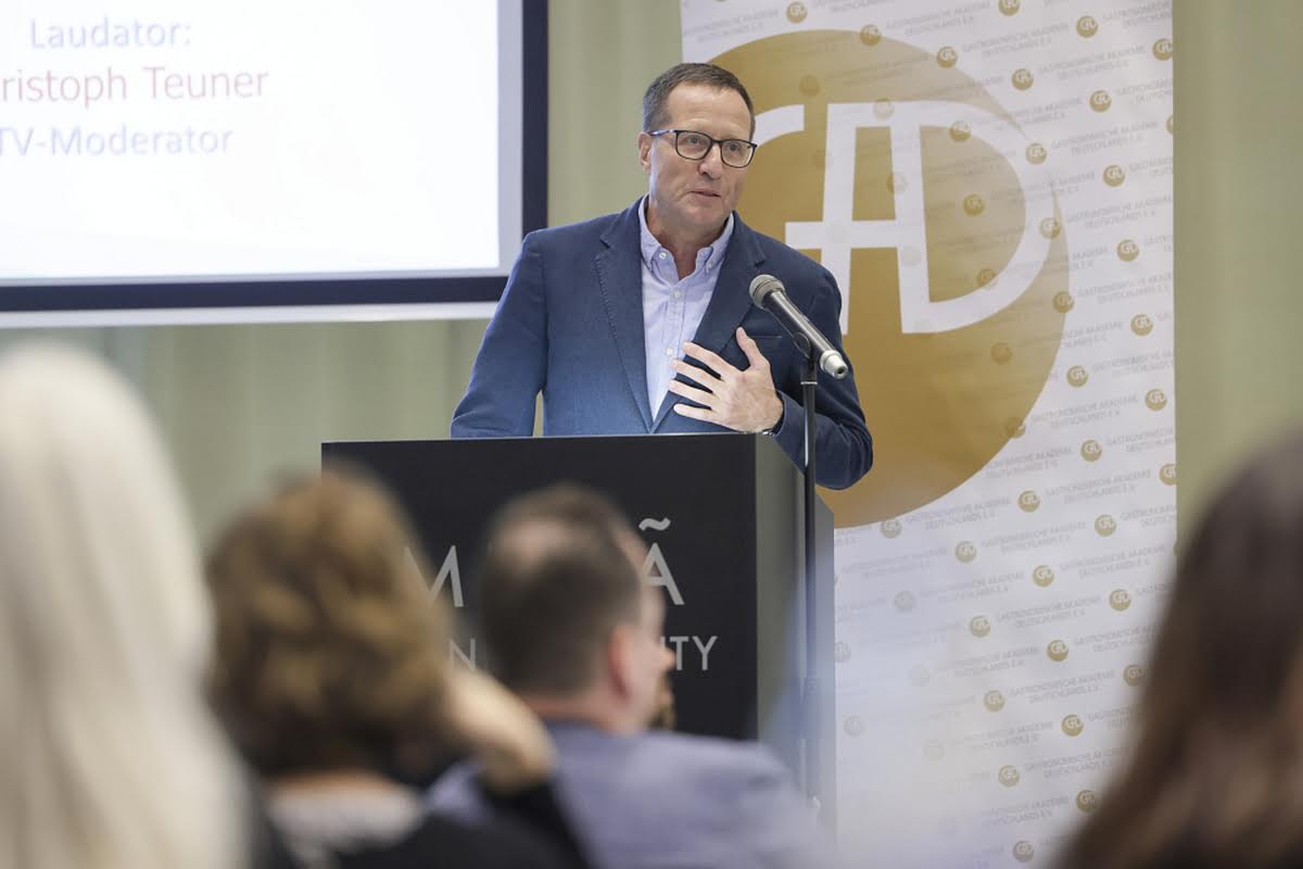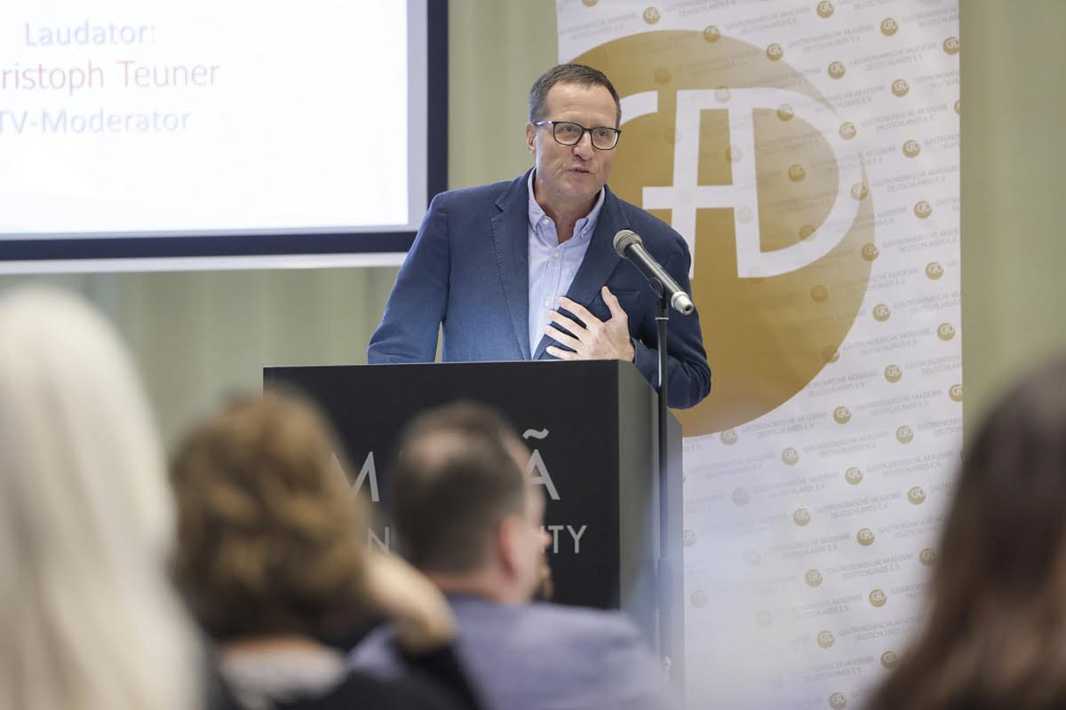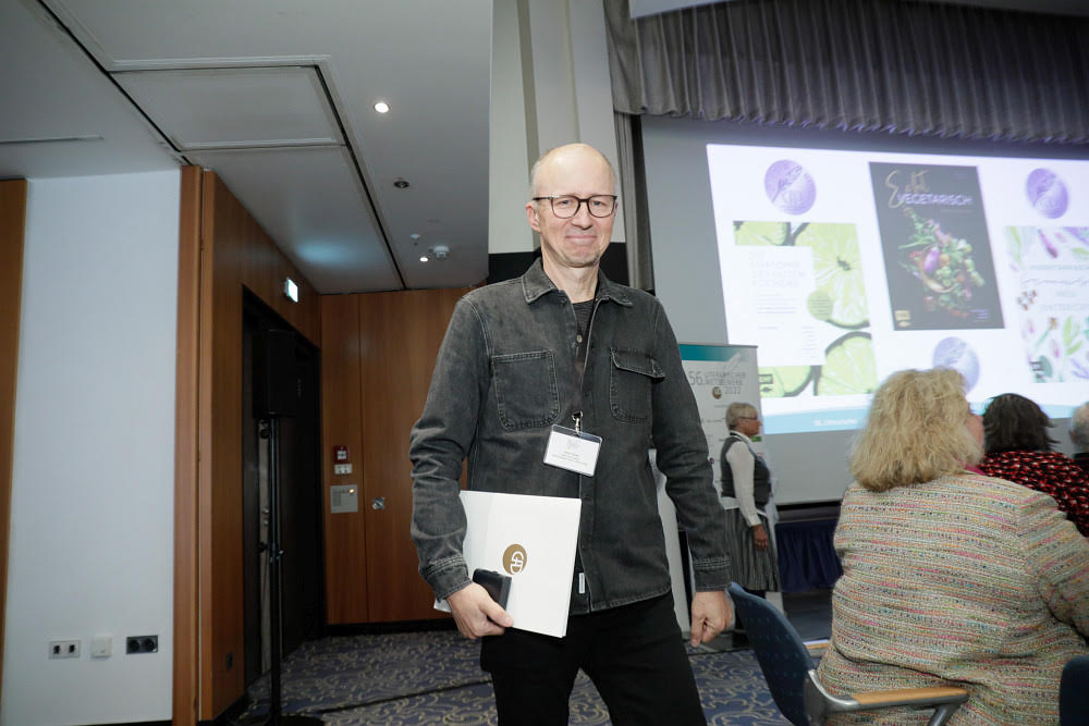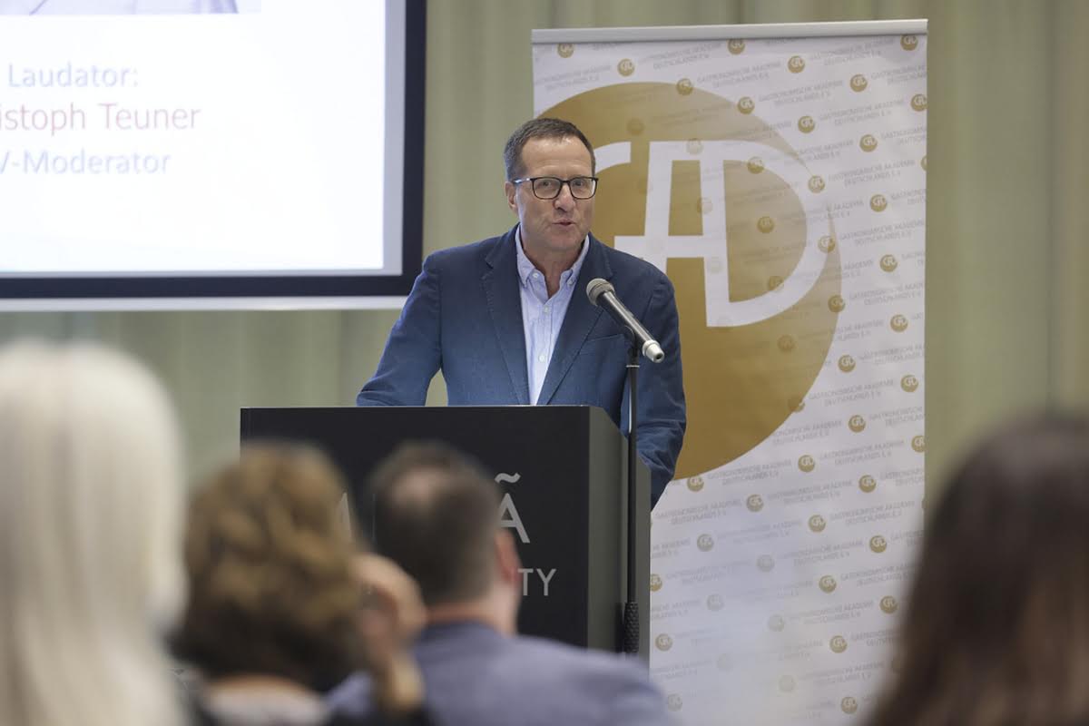 GAD-Präsident Friedhelm Josephs freute sich bei seiner Begrüßung die internationale und kulturelle Bedeutung dieser Veranstaltung zu unterstreichen und begrüßte besonders Herrn Takeshi Ito, den Generalkonsul Japans in Frankfurt, und Paul Kelly, den CEO des Dorling Kindersley Verlags, der weltweit zu den führenden Häusern für illustrierte Sachbücher zählt. In seiner Rede ging er auch auf die Veränderungen ein, wie KI auch den Kochbuchmarkt in Zukunft stark beeinflussen wird. Mit diesem Thema wird sich auch die GAD in den kommenden Jahren intensiv befassen – denn, so Josephs weiter, „unsere Aufgabe ist es, Qualität zu fördern, Transparenz zu bewahren und den Schutz geistiger Leistung zu sichern“. Er schloss mit dem Ausblick: „Wenn ich auf die Geschichte dieses Wettbewerbs zurückblicke, sehe ich nicht nur Listen von Preisträgern. Ich sehe ein kulturelles Netzwerk, das sich über Generationen erstreckt – Autorinnen und Autoren, Verlage, Journalistinnen, Köchinnen, Wissenschaftler, Menschen mit Leidenschaft und Neugier. Sie alle tragen dazu bei, dass das kulinarische Wissen, die Geschichten, die Erfahrungen unserer Zeit nicht verloren gehen. In gewisser Weise schaffen wir hier jedes Jahr ein Stück „Gastronomisches Gedächtnis“ – eine Sammlung von Ideen, Einsichten und Inspirationen, die weit über den Tellerrand hinausreicht.